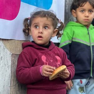 Mitten im Chaos, zwischen Ruinen und Trümmern, steht weiterhin unsere Foodbank in Gaza – für viele Familien der einzige Ort, an dem es noch eine warme Mahlzeit gibt.